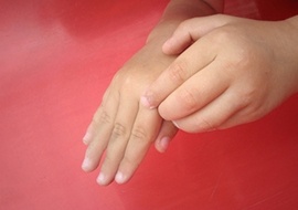 ‘Frederique was vier jaar oud toen ze bij mij op consult kwam’, vertelt homeopaat Nathalie van der Stelt. ‘Ze had extreem veel eczeem, van top tot teen zat ze onder. In het verleden was ze een paar keer opgenomen in het ziekenhuis. Daar kreeg ze een pakje met hormoonzalf aan. Frederiques huid reageerde op van alles: op voedingsmiddelen, honden en katten, baden en stress. Dan speelde haar huid flink op. Frederique had nat eczeem, dat werd vuurrood en ze had pusachtig vocht op haar gezicht. Ondanks alle maatregelen krabde ze haar huid regelmatig tot bloedens toe open. Ook onder haar haartjes zaten veel schilfers en dat gaf enorme jeuk. Zodra Frederique zich ging omkleden begon het al vreselijk te kriebelen. Op vakantie naar zon en zee werd de huid veel rustiger.